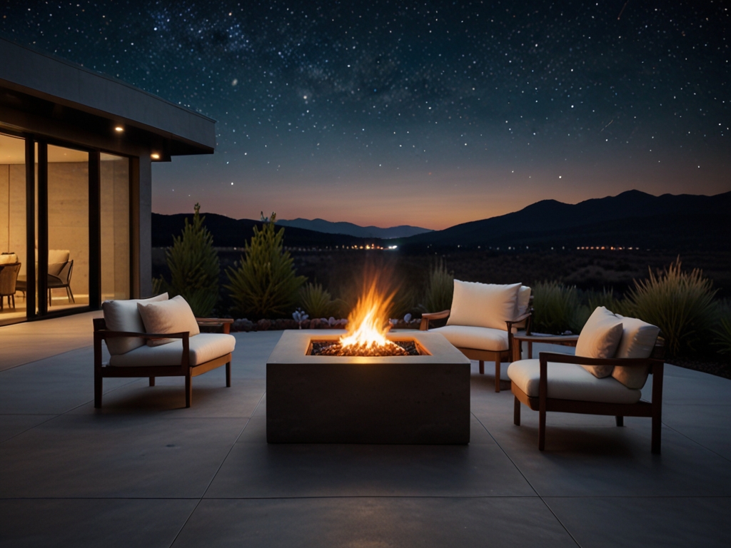 A compact fire pit provides warmth and ambiance while serving as a focal point.