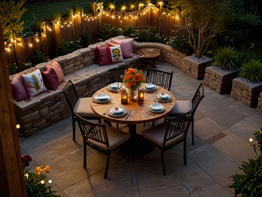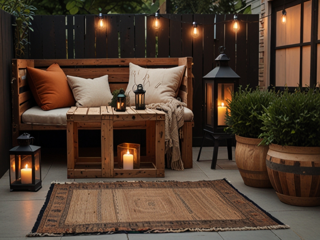 String lights, solar-powered lanterns, or wall-mounted sconces add ambiance without taking up valuable space.