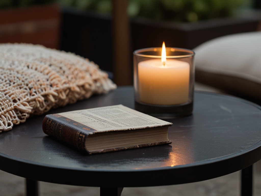 A tabletop fountain or a mini pond brings soothing sounds and a touch of nature to your patio without overwhelming it.